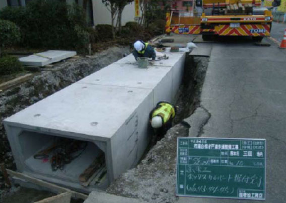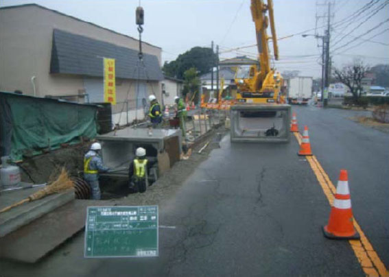 概要厚木市三田地区で、道路脇の用水路をコンクリート製の暗渠管に替えて、その上を歩道にする工事をしました。